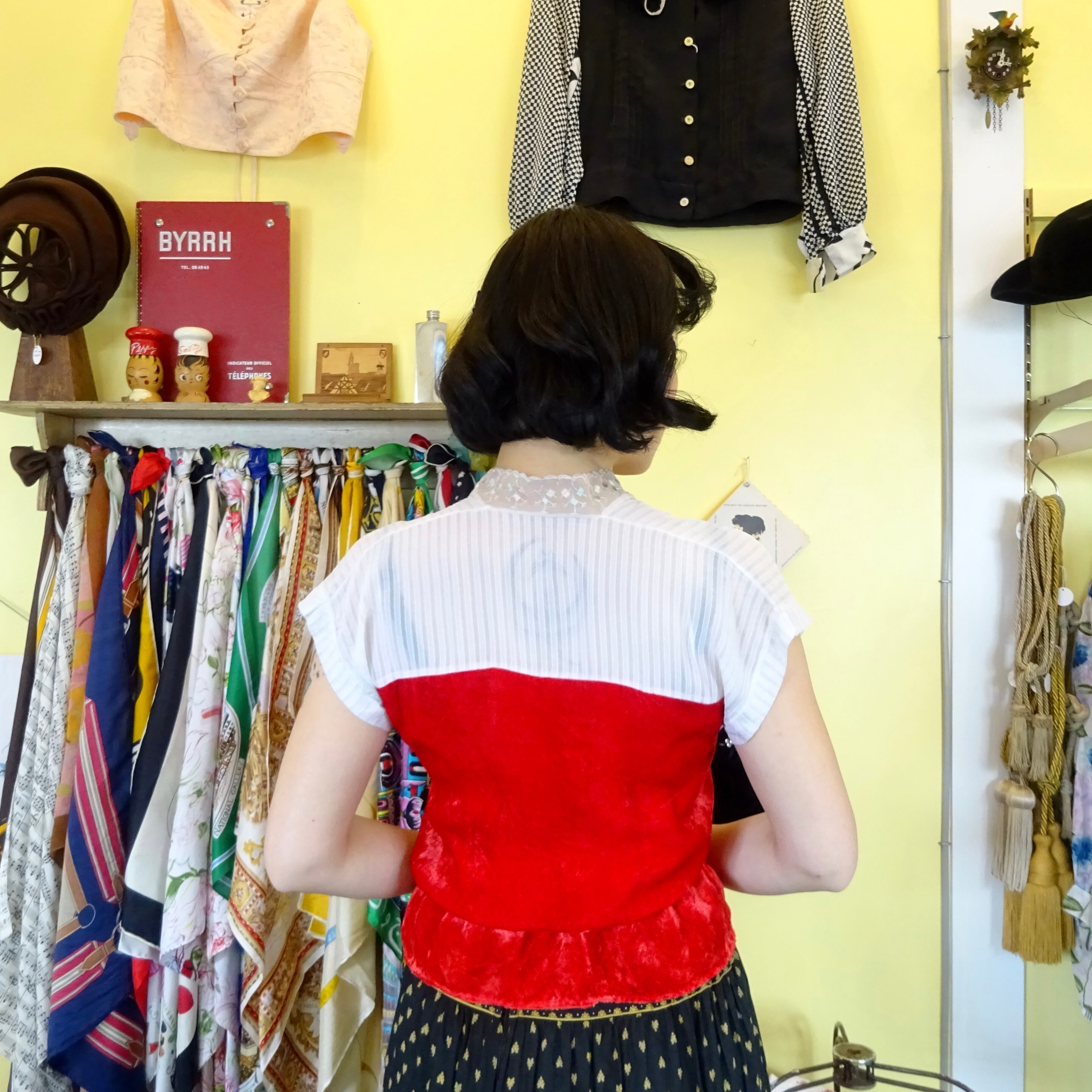 シースルーに毛足の長いベルベットがとても素敵なコントラストのハンドメイドブラウス