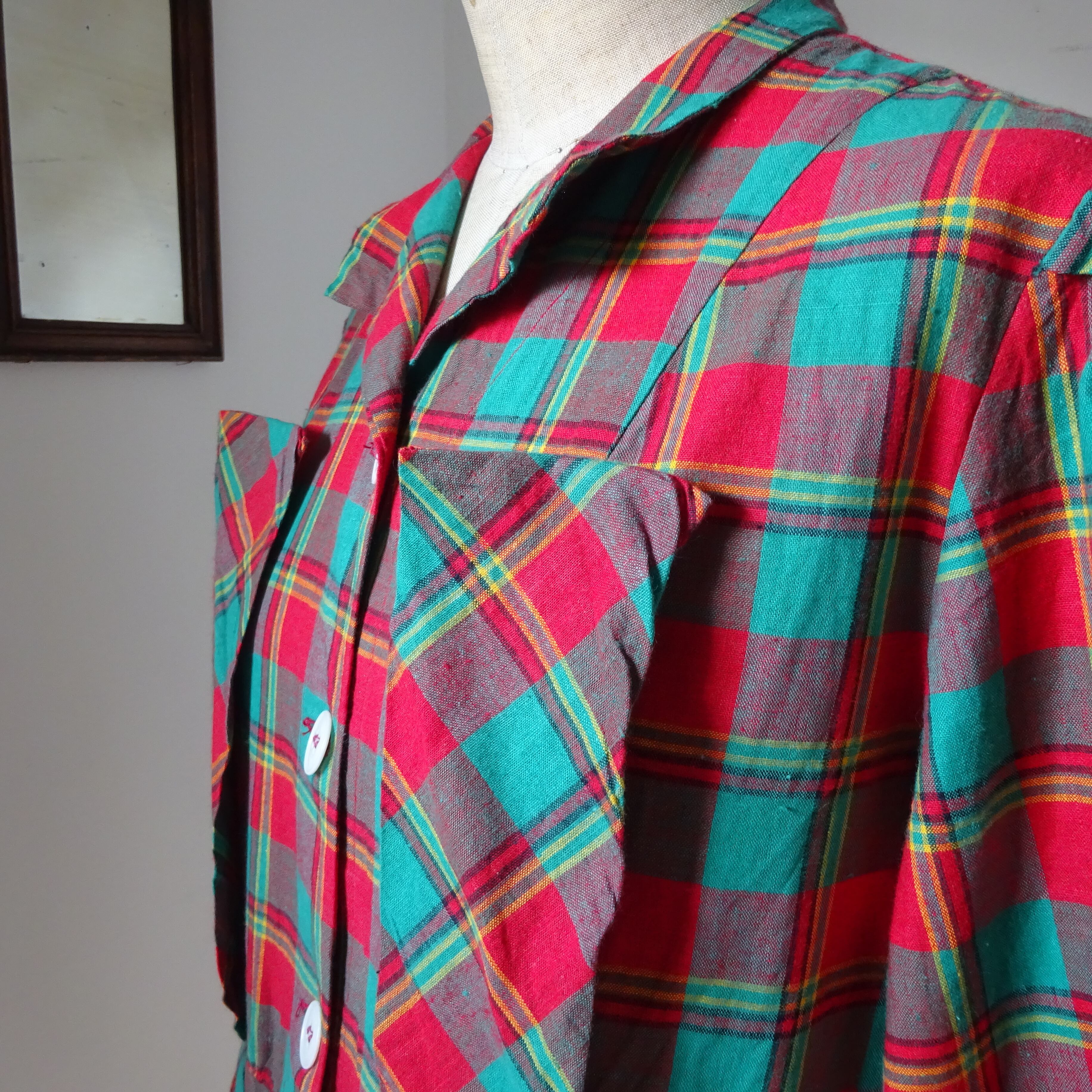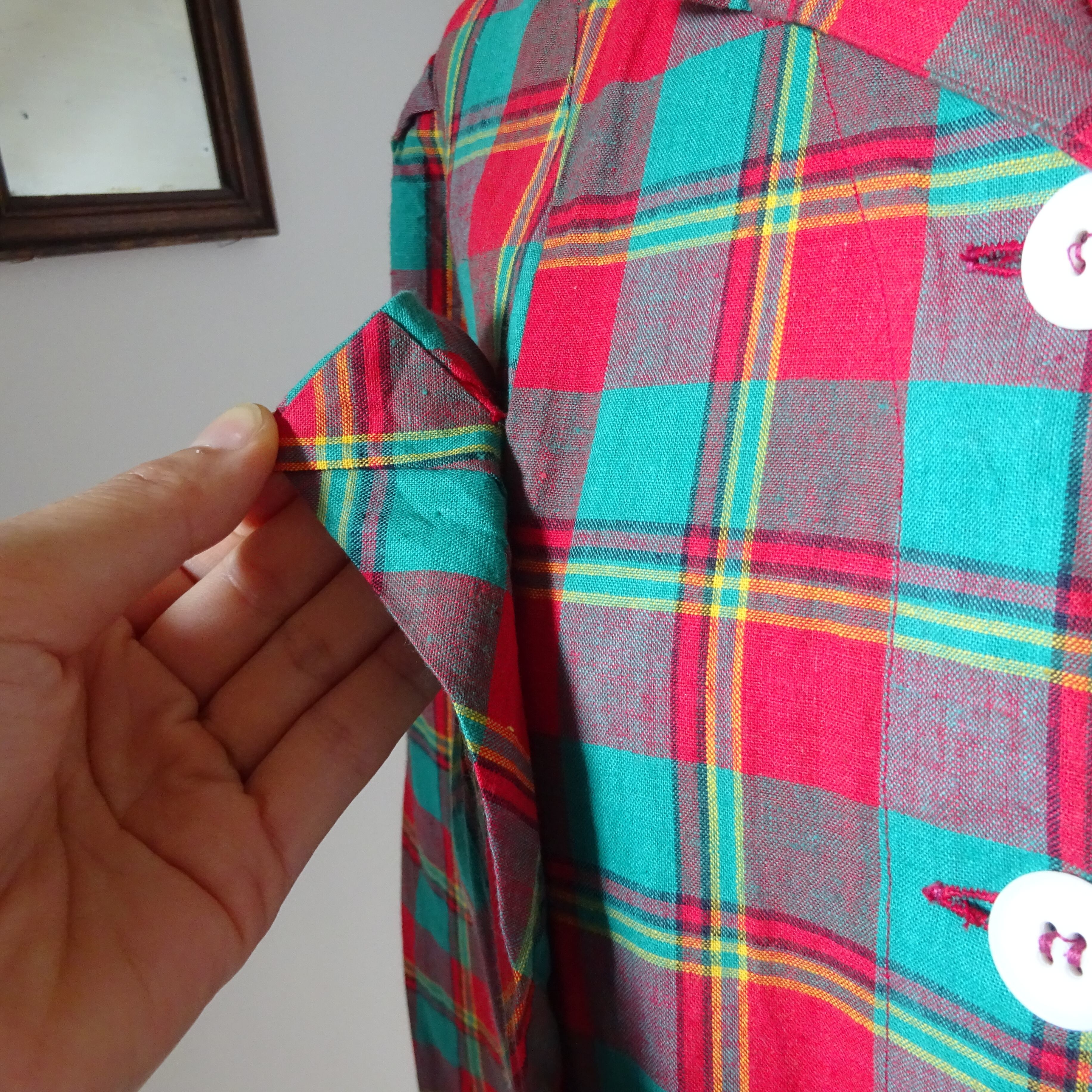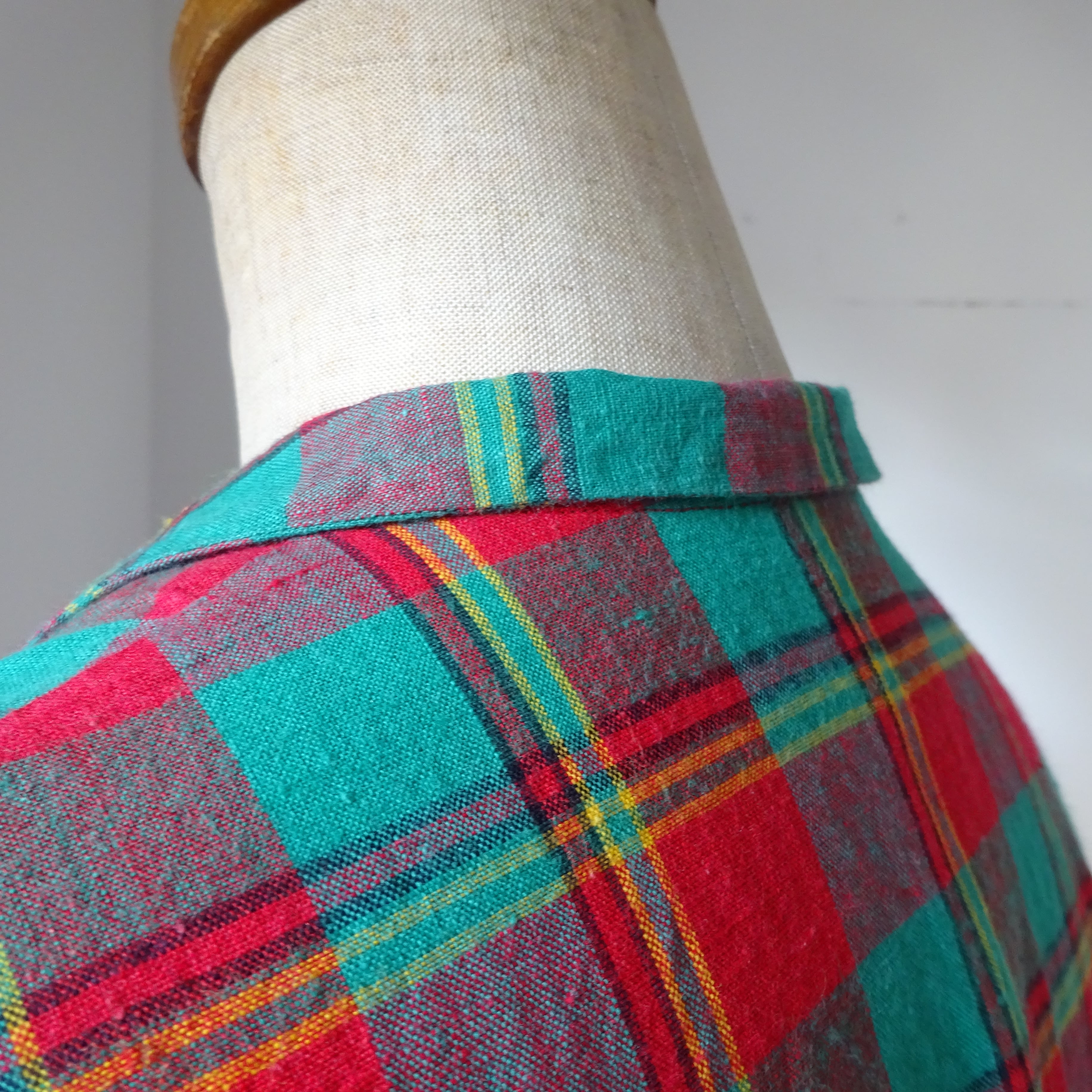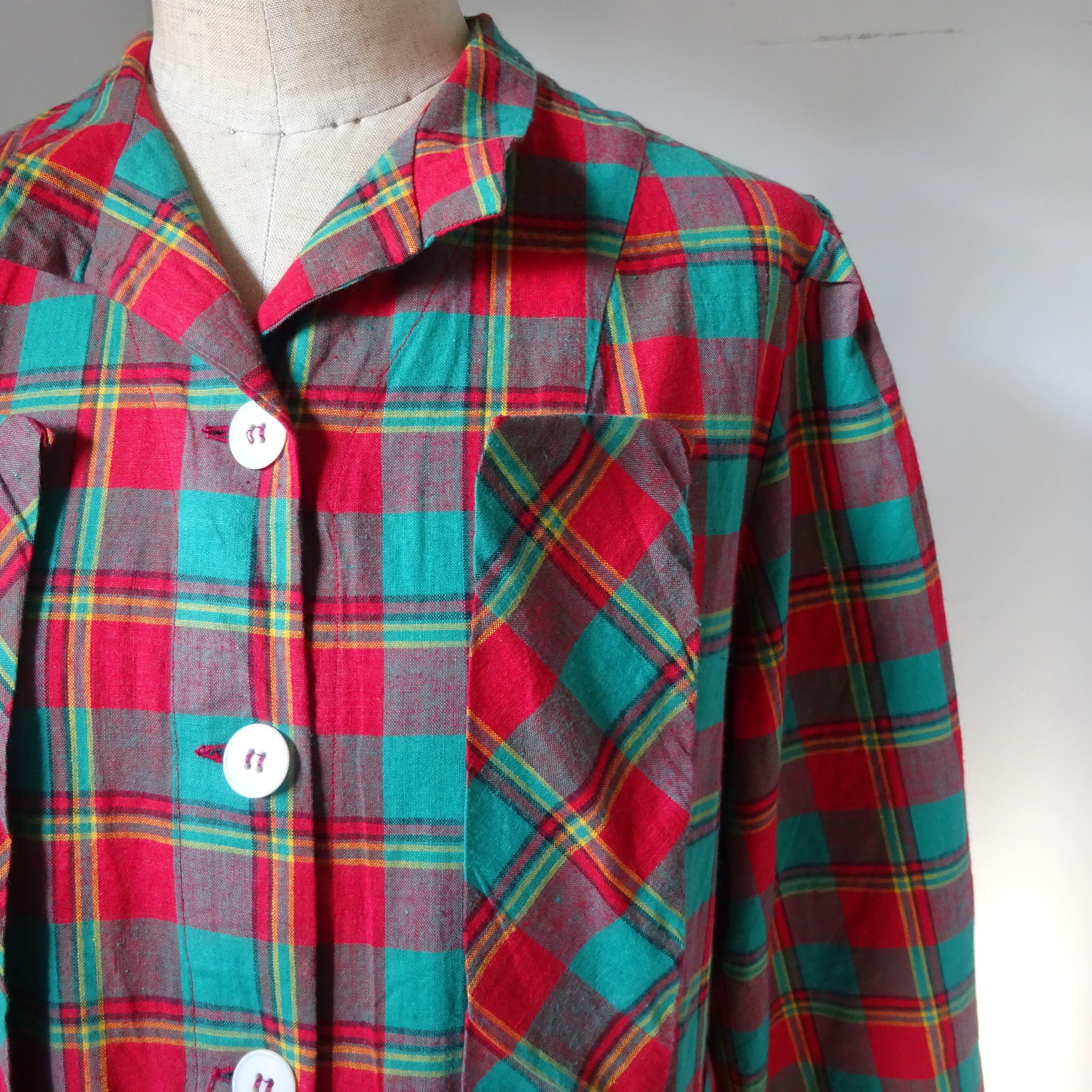 大柄なチェックと大きなボタンに相反して小さな襟がこれまた可愛い。