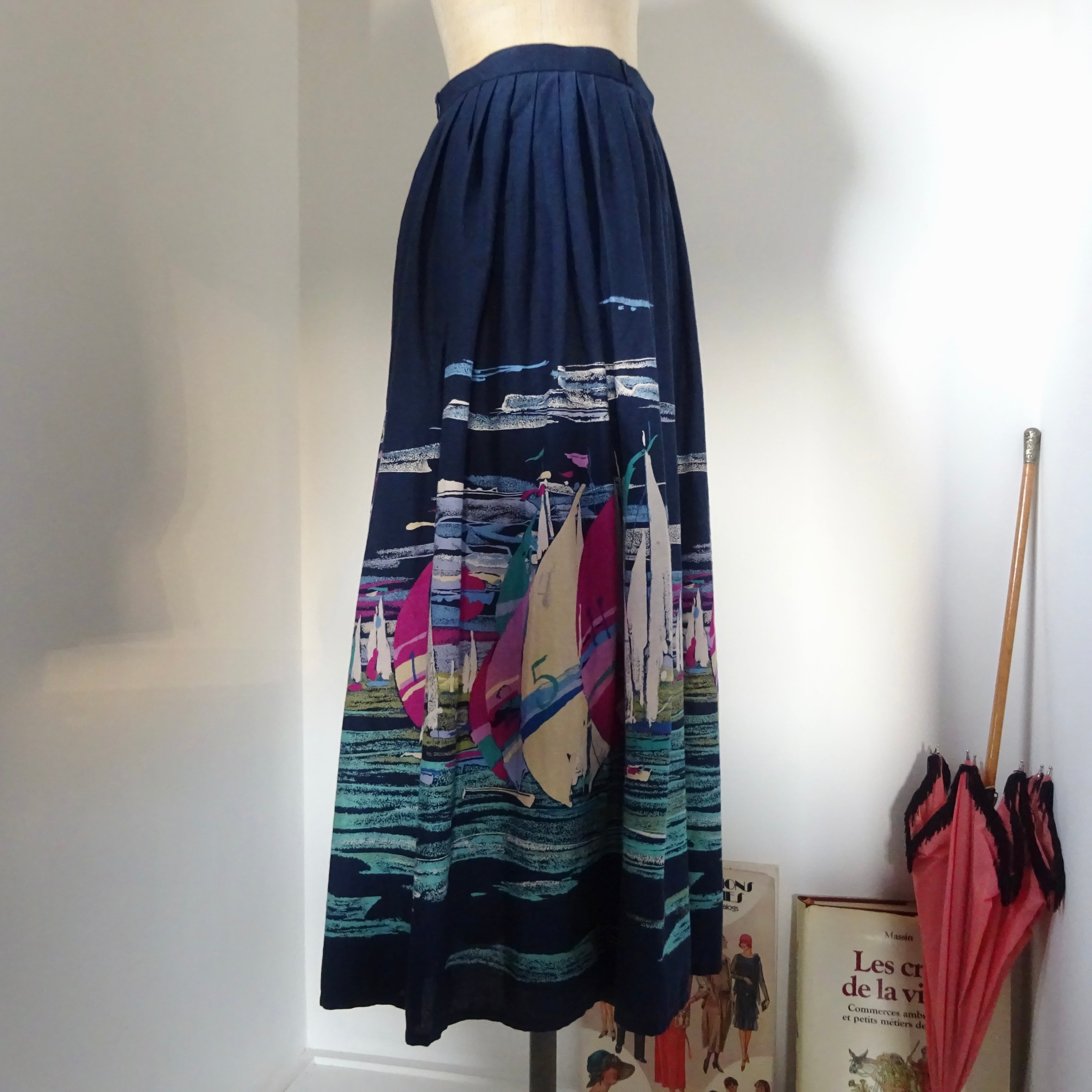 鮮やかな色合いがとても可愛らしいヨット柄のヴィンテージスカート