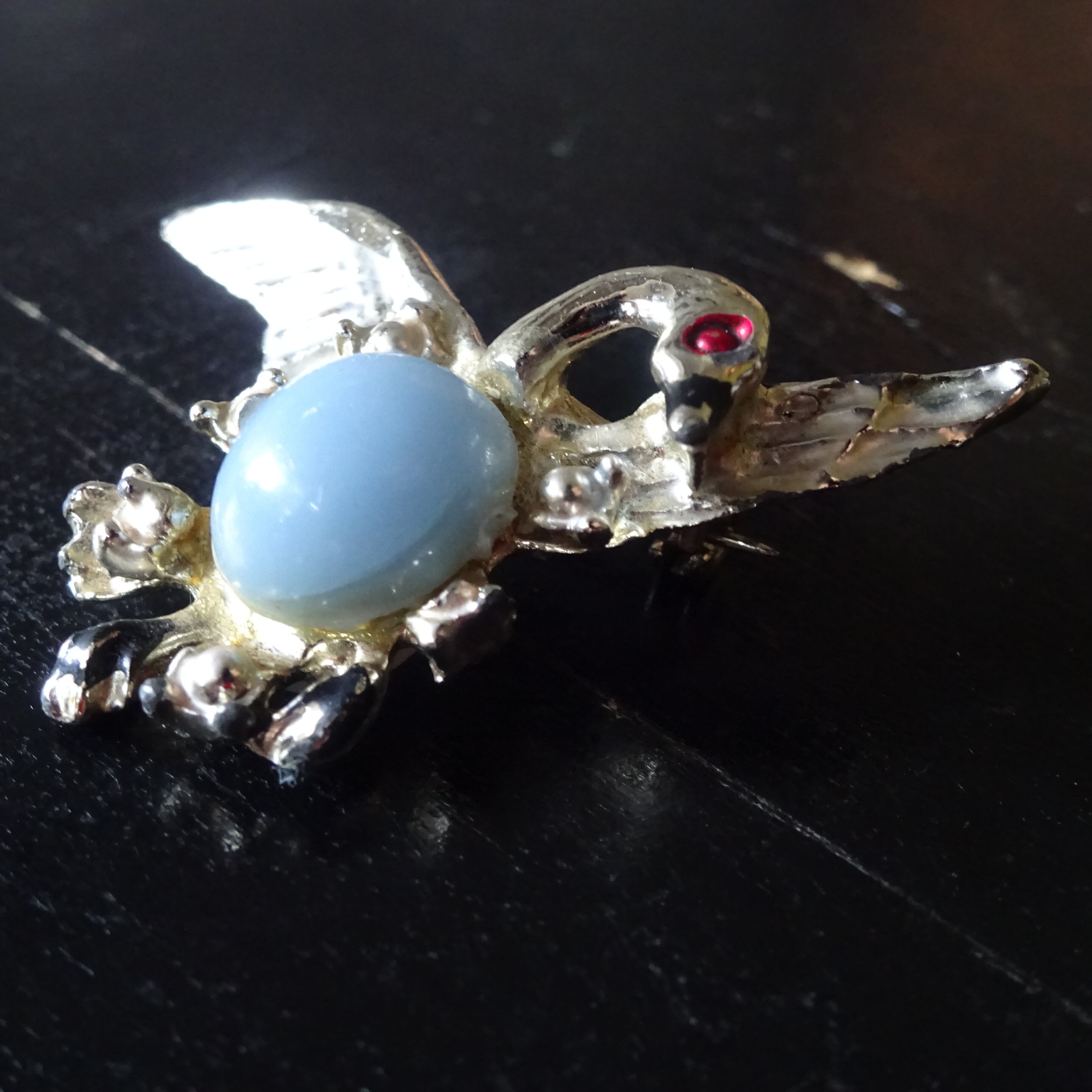 水色の大きなお腹が可愛らしい白鳥のブローチ