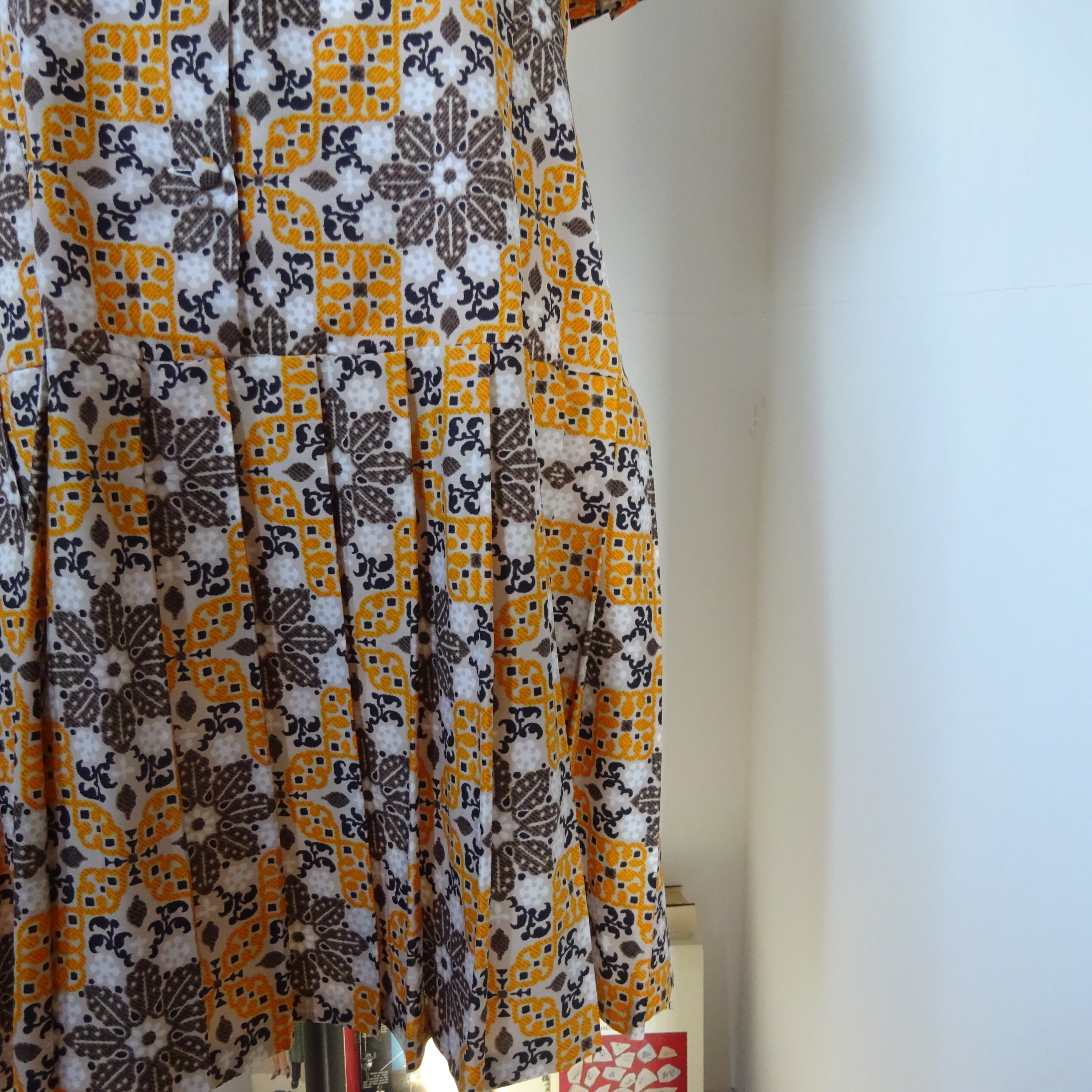 レトロな柄に大きめのプリーツがとても可愛い一枚