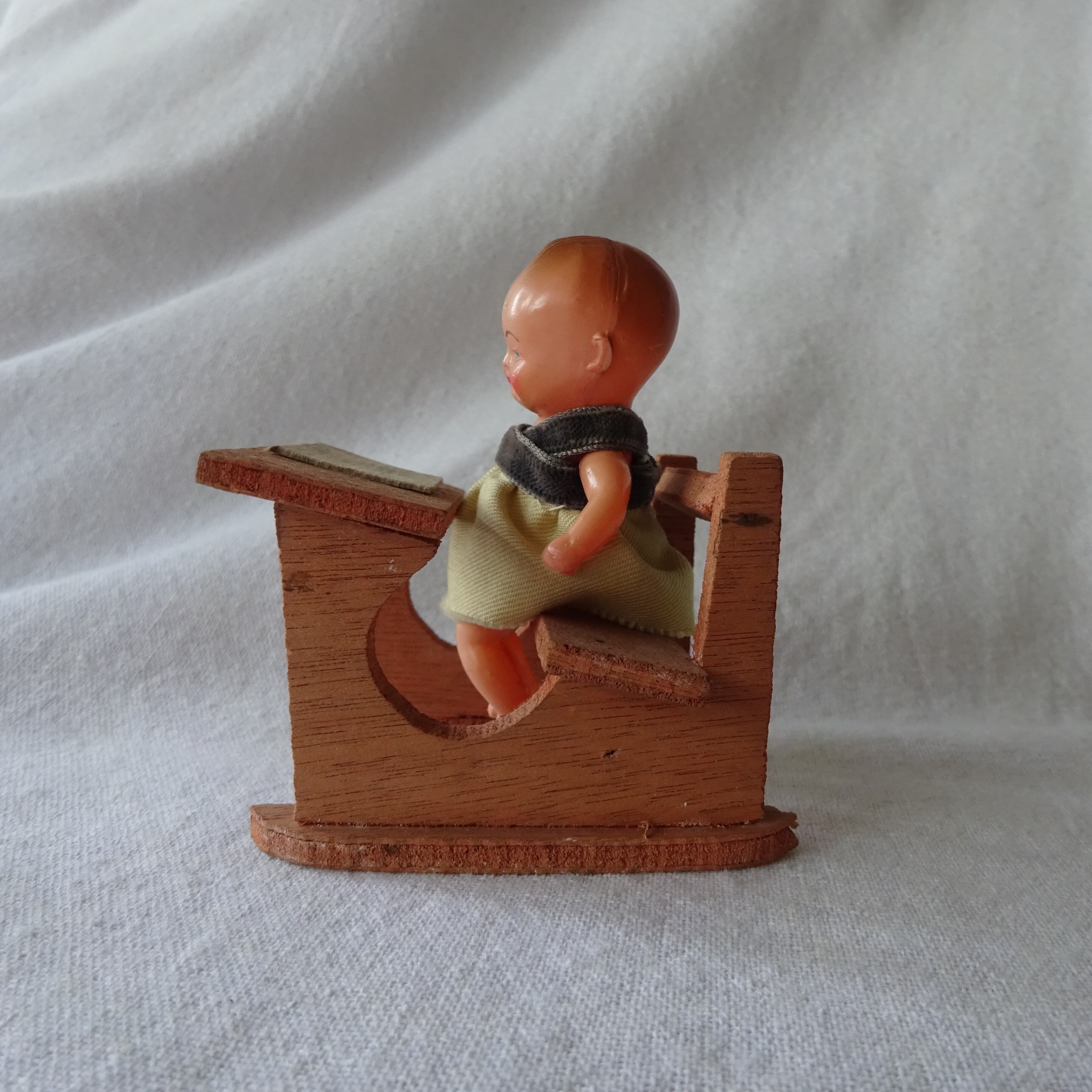 推定すごく赤ちゃんっぽいけど、ちょこんと机に座ってちゃんと書き物をしているとっても微笑ましいお人形です。