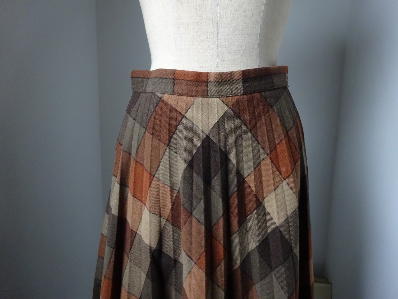 細かなアコーディオンプリーツと、大きなチェックの組み合わせが素敵なウールスカート